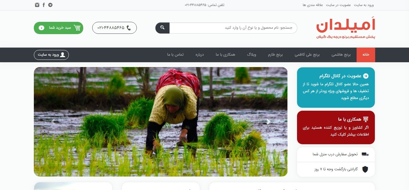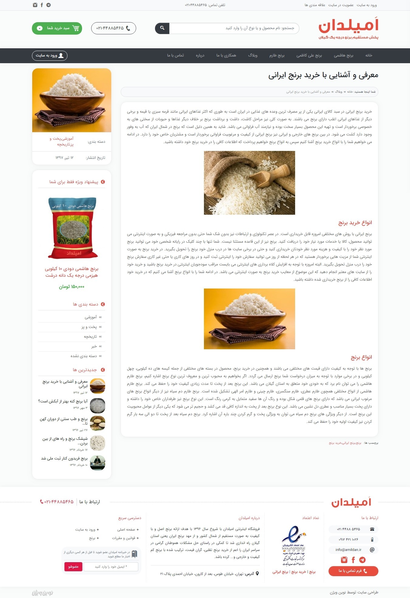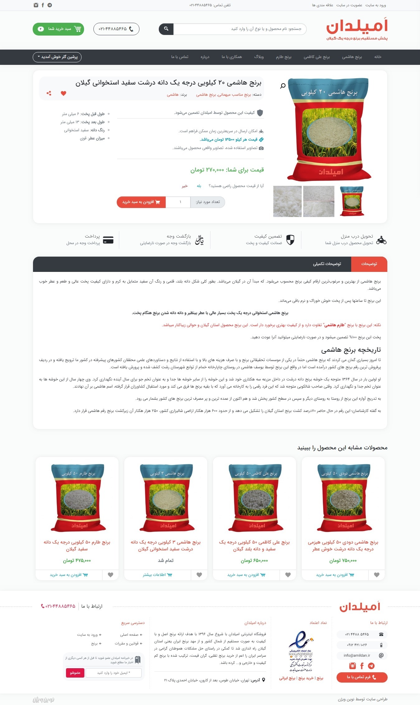 امیلدان یکی از فروشگاه های معتبر در زمینه ارائه محصولات برنج و خشکبار می‌باشد که برای ارائه محصول با کیفیت پا به این عرصه گذاشته است. برخی از امکانات این وب سایت که به صورت کاملا اختصاصی طراحی و برنامه نویسی شده اند: