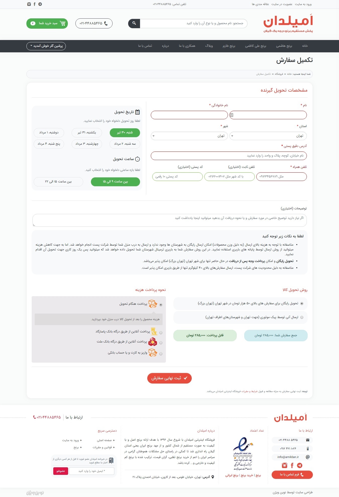 • امکان ارائه نحوه تحویل بر اساس استان انتخاب شده مشتری