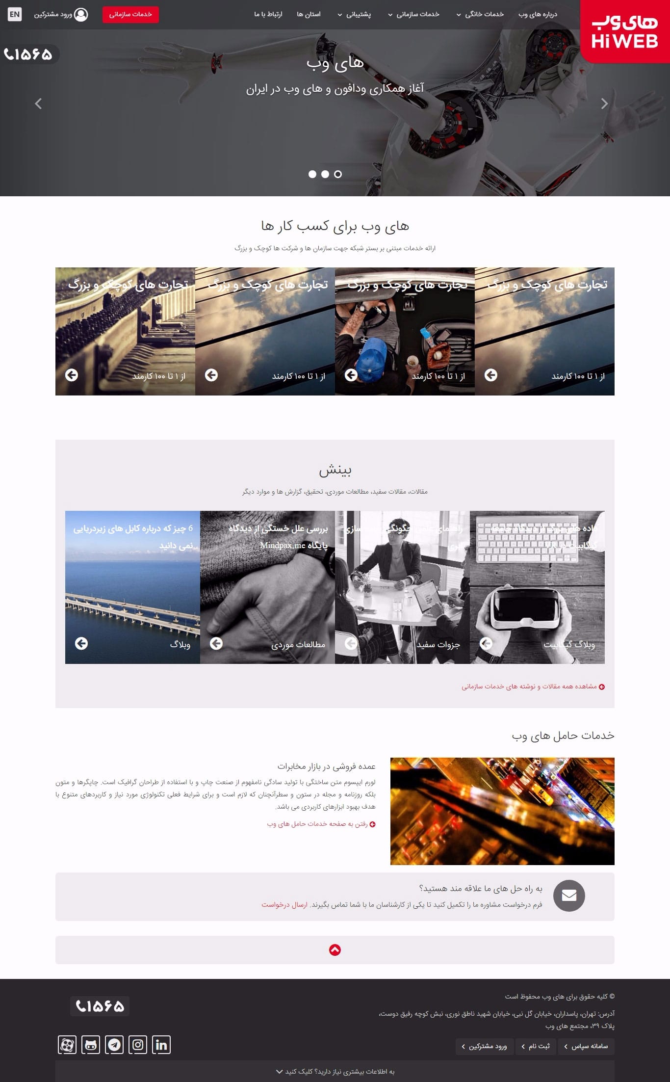 وب سایت رسمی شرکت “های وب” پس از ۵ سال توسط نوین ویژن مجددا طراحی شد که در پایین این صفحه میتوانید نمونه ای از برخی صفحات طراحی شده را مشاهده نمایید.