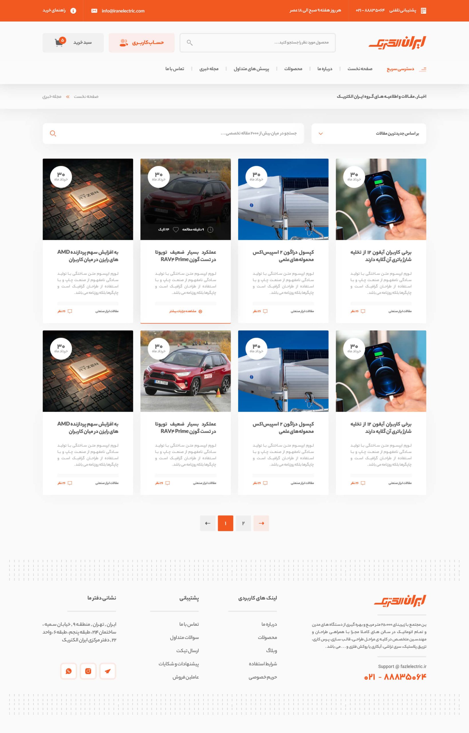 این پروژه در سال ۱۴۰۱ انجام شد و از همان ابتدا تصمیم بر این بود که مسیر استانداردهای آماده را کنار بگذاریم. کار با طراحی گرافیکی شروع شد؛ بدون قالب از پیشساخته، بدون محدودیتهای تکراری. ساختار صفحات، رنگها، ریتم محتوا و حتی نحوه نمایش محصولات، همه بر اساس هویت ایران الکتریک طراحی شد. بعد از تأیید گرافیک، وارد مرحله پیادهسازی سایت شدیم و وردپرس فقط نقش بستر را داشت، نه قالب و چارچوب تحمیلی.