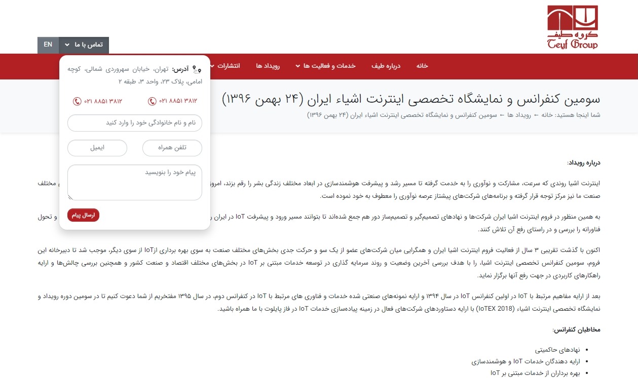 طراحی وب سایت این شرکت بر عهده مجموعه نوین ویژن بوده است که مفتخریم آن را در تابستان ۱۳۹۸ به اتمام برسانیم.